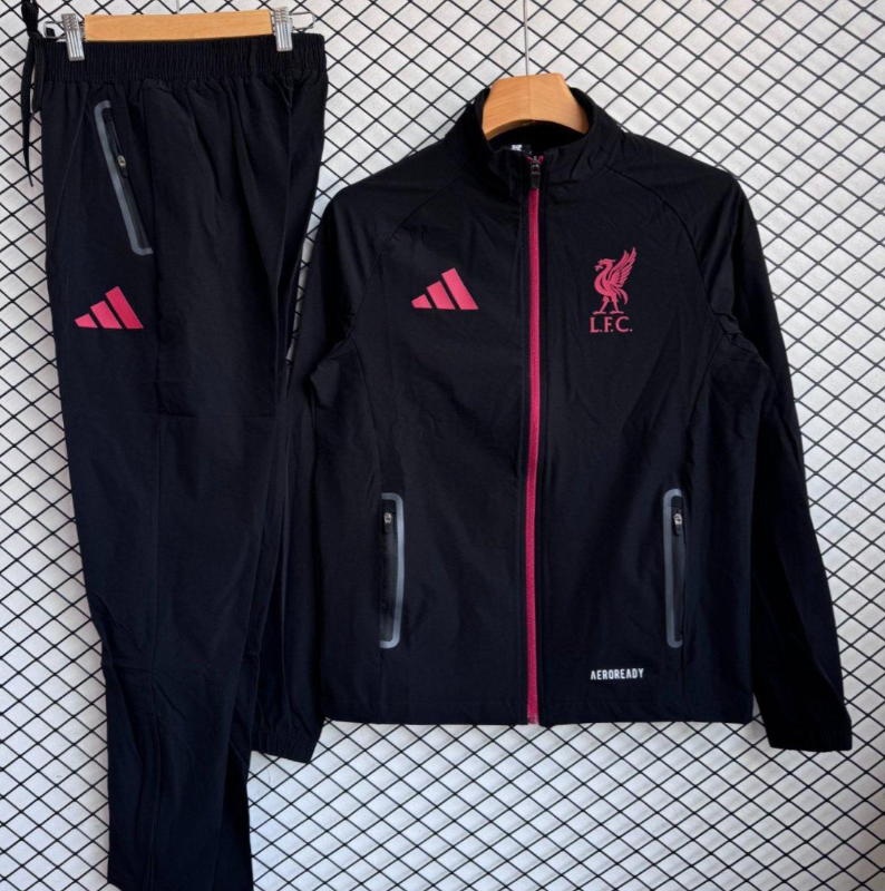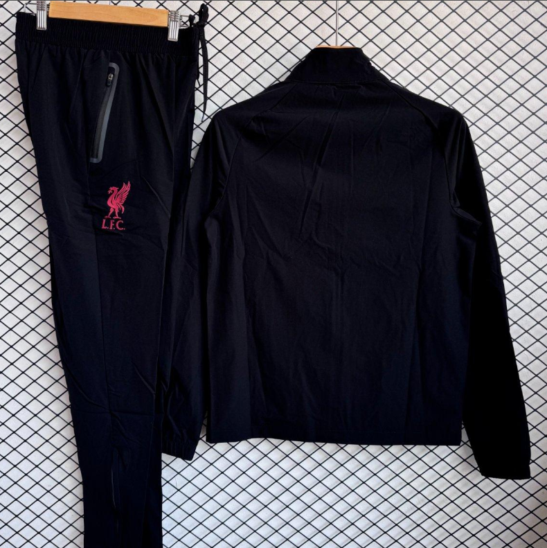 25/26 Liverpool Black/Red Full Zipper Windbreaker + Long Pants
