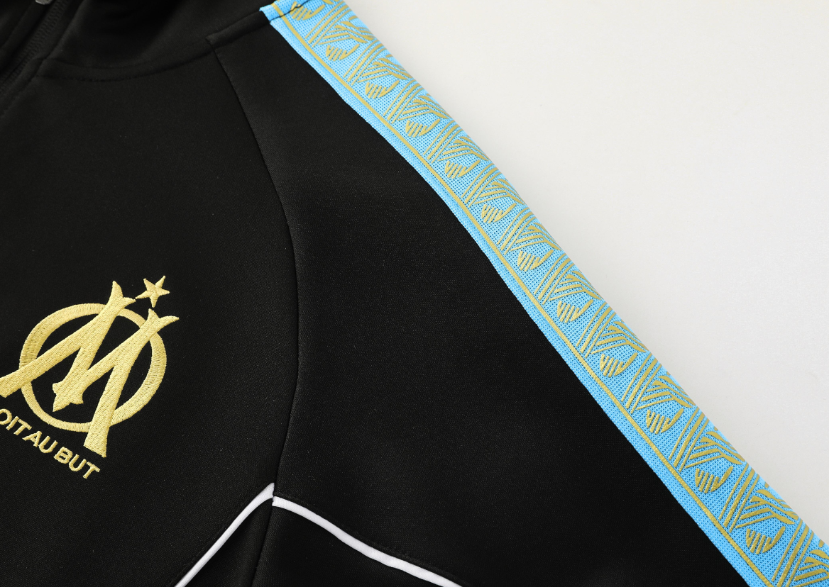 25/26 Olympique Marseille Black Full zipper Jacket Tracksuit+ long pants