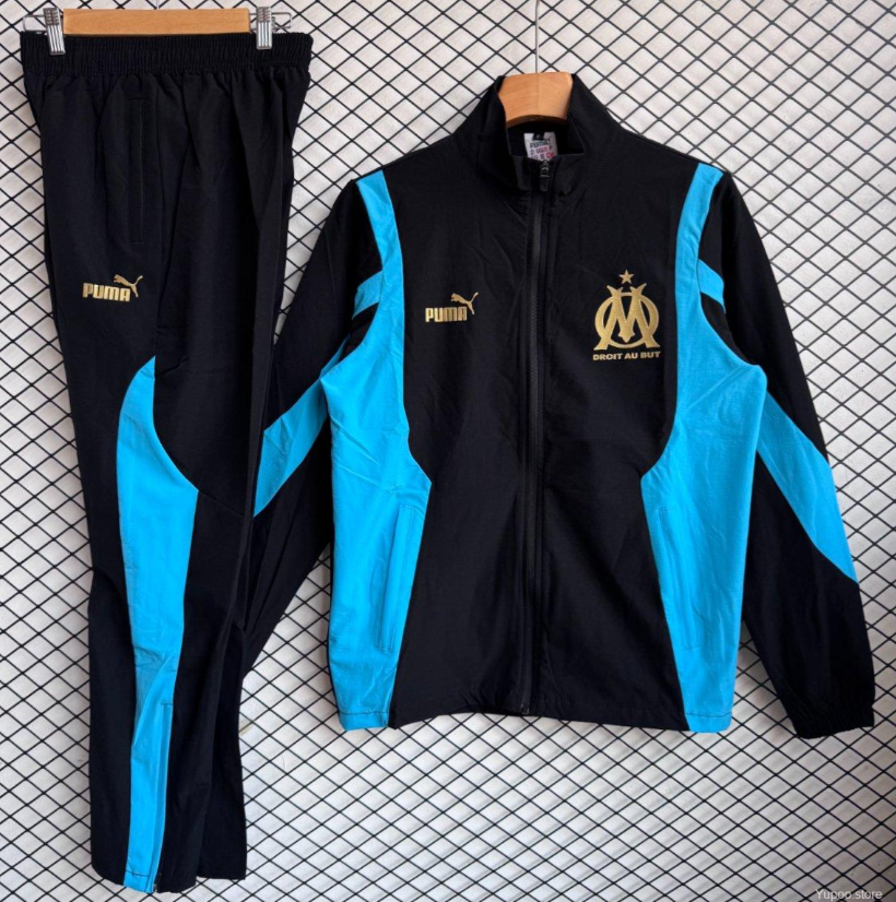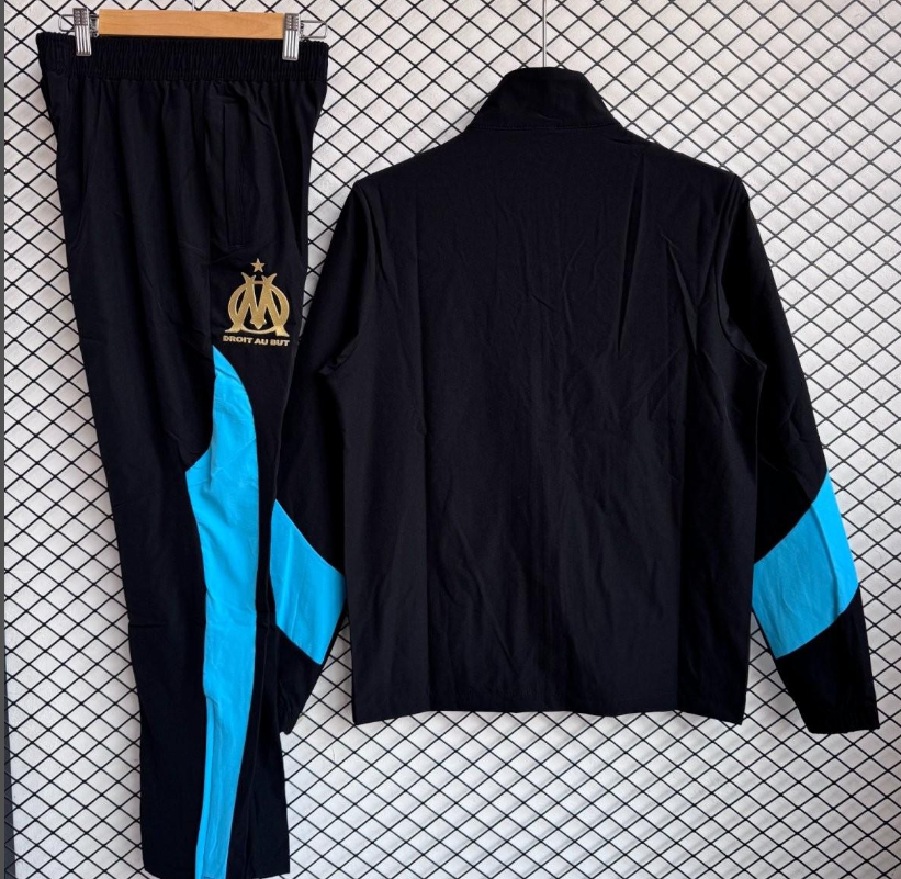 25/26 Olympique Marseille Black Full Zipper Windbreaker + Long Pants