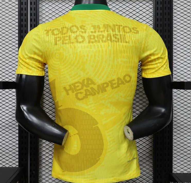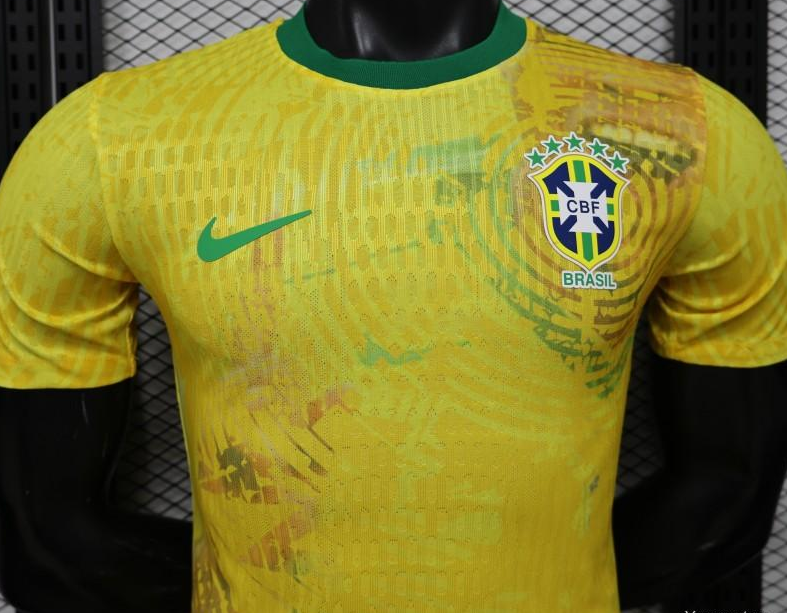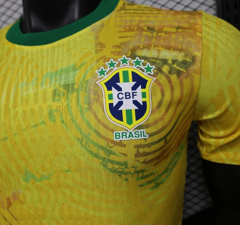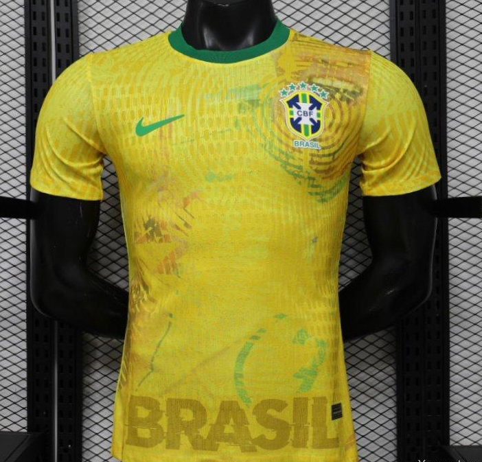 Player Version 2026 Brazil Yellow with Green Ink Splash Special Edition Home Jersey